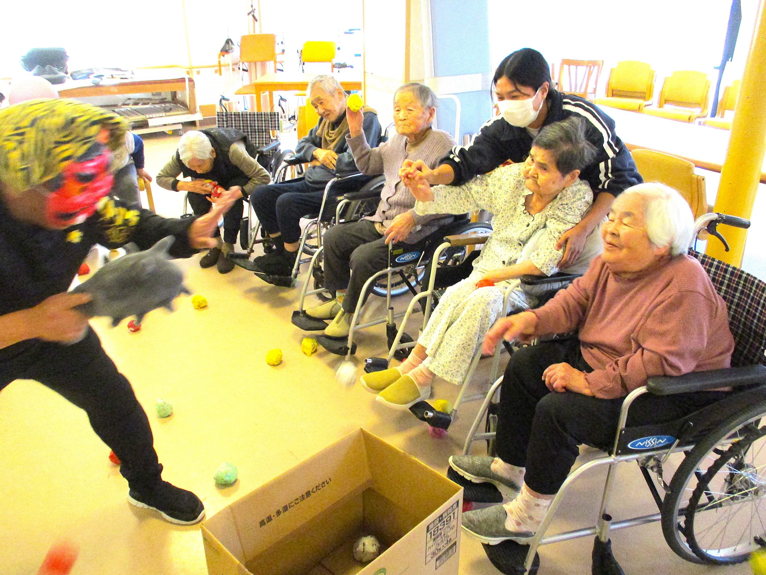 グループホーム龍星の2月の行事です。3F4F合同で節分の豆まきを行いました。新聞紙を丸めて「大きな豆」を作り、鬼にめがけて力いっぱい投げました👹「鬼は外、福は内」「幸せ来い来い」と言いながら今年の無病息災を願いました。